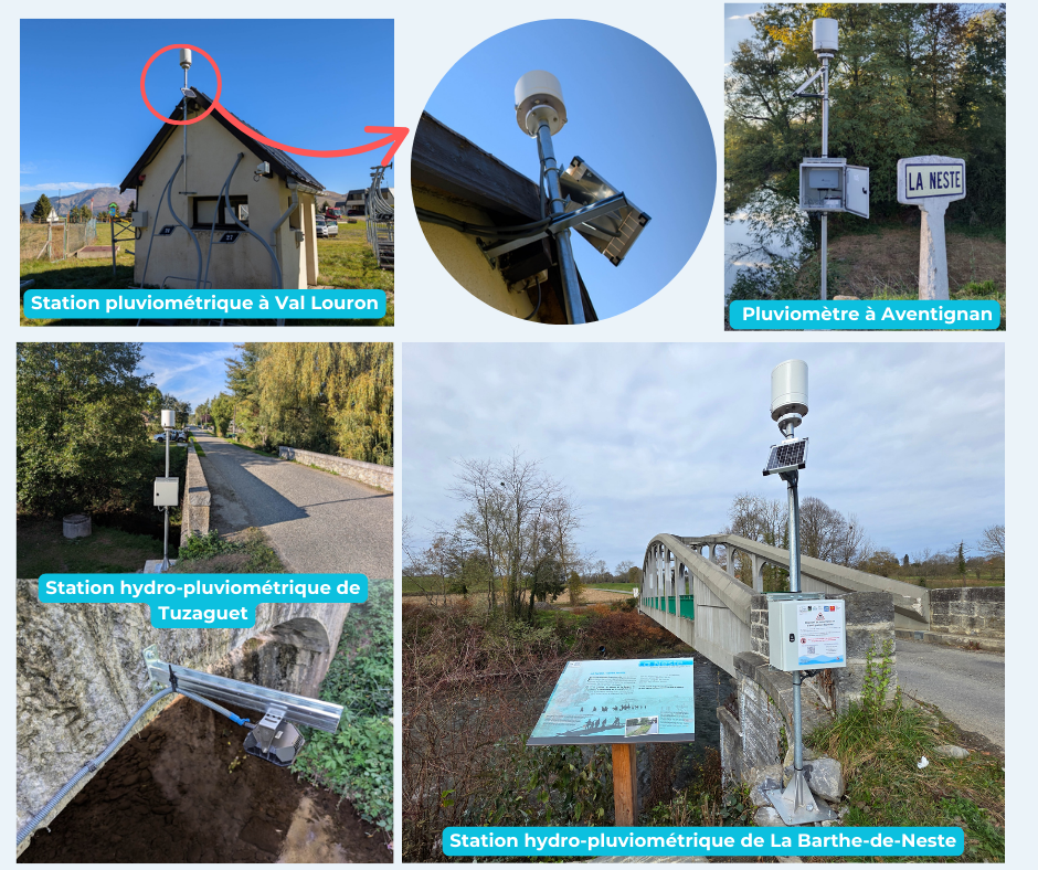 Le bassin versant de la Neste est partiellement couvert par les réseaux de surveillance nationaux gérés par le Service de Prévision des Crues (SPC) de la DREAL (Direction régionale de l’environnement, de l’aménagement et du logement) et Météo-France. Afin de renforcer la prévention et la gestion des risques d’inondation, le PETR du Pays des Nestes a mené un projet d’instrumentation du bassin versant en station de télémesures.